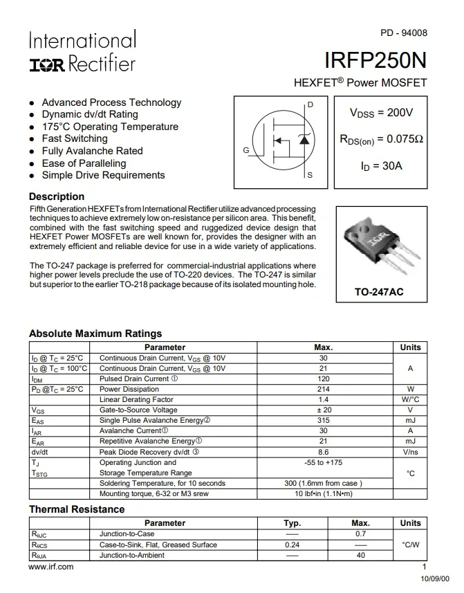Product Part No.IRFP250NPBF-FORM LEAD
