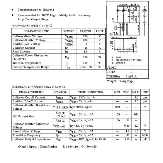 รายละเอียดสินค้า 2SC5200 ทรานซิสเตอร์ เครื่องเสียง TOSHIBA Thansitor Japan 2SC5200 โตชิบา แท้ เสียงดี