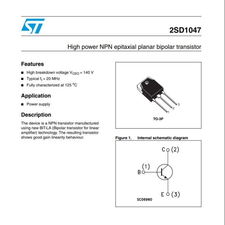 KTD1047, 2SD1047 Transistor NPN 140V/10A NPN PLANAR SILICON TRANSISTOR(AUDIO POWER AMPLIFIER DC TO DC CONVERTER) Complementary to KTB817, 2SB817 Maker KEC [KEC(Korea Electronics)] Package/Case TO-3P